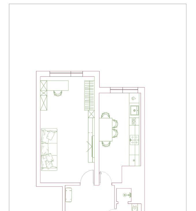 • 21-метровой жилой комнаты прямоугольной формы, что очень удобно для зонирования пространства.