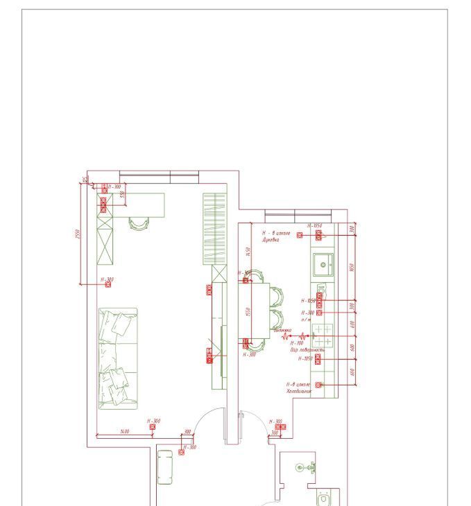 • 7 -метровой лоджии, соединяющей кухню с комнатой