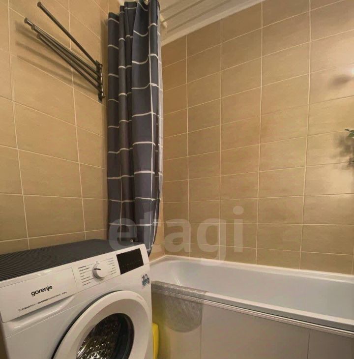 Раздельный санузел с аккуратной чистой ванной. В санузле новая стиральная машинка.