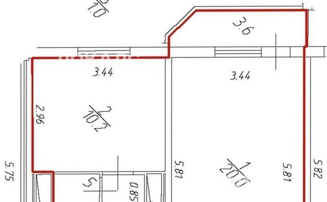 Общая площадь по планировке без учета лоджии 38,1 м2, комната 20 м2, кухня 10,1 м2, с/у раздельный, лоджия 3,6 м2. Перепланировок не производилось.