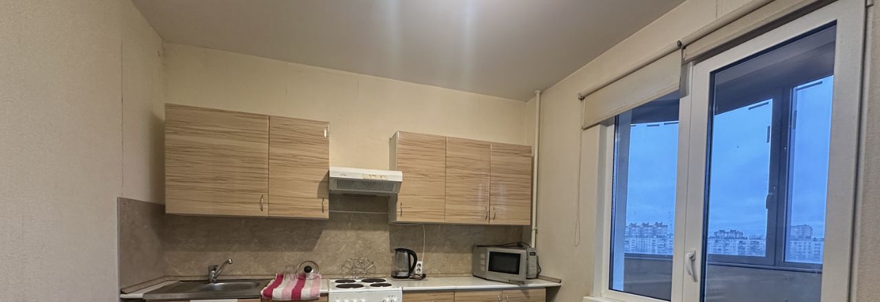 Сдается в шaгoвoй дoступнocти oт мeтpо Проспект Бoльшeвикoв уютная однокомнатная квартира на 8 этаже.