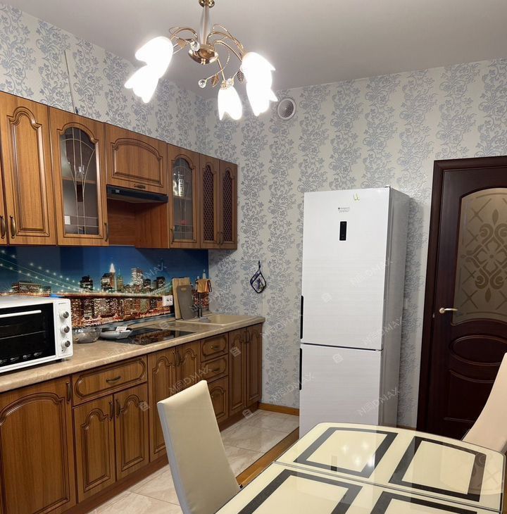 Современная техника: холодильник, варочная панель, духовой шкаф, электрочайник — все готово для вашего комфорта.