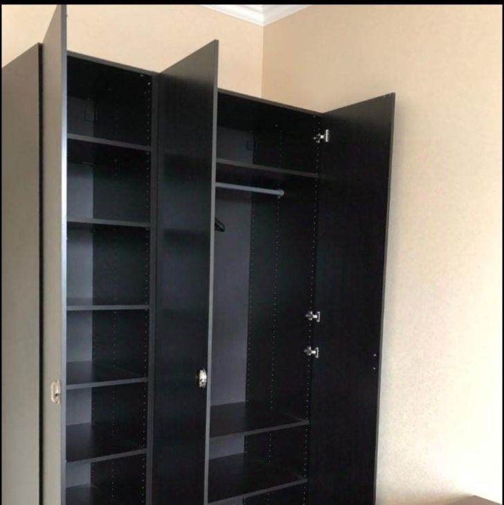 Большая двуспальная кровать на 160, матрас, 2 тумбочки прикроватные, шкаф и комод (икеа). Из техники: холодильник, стиральная машинка, варочная панель, духовка, вытяжка, микроволновая печь (новая), чайник и гладильная система tefal (новая). Все в хорошем и рабочем состоянии. Нет посуды и спальных принадлежностей.