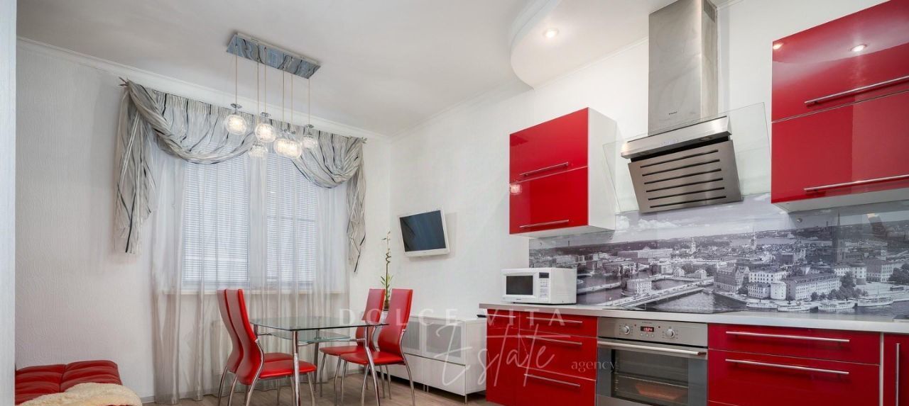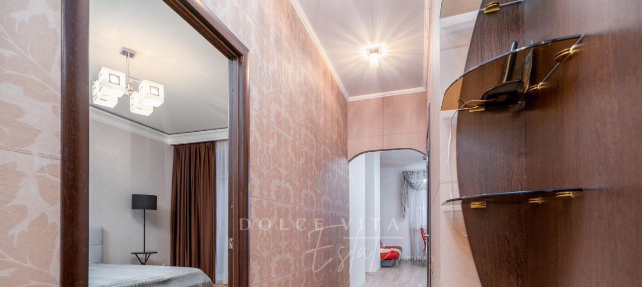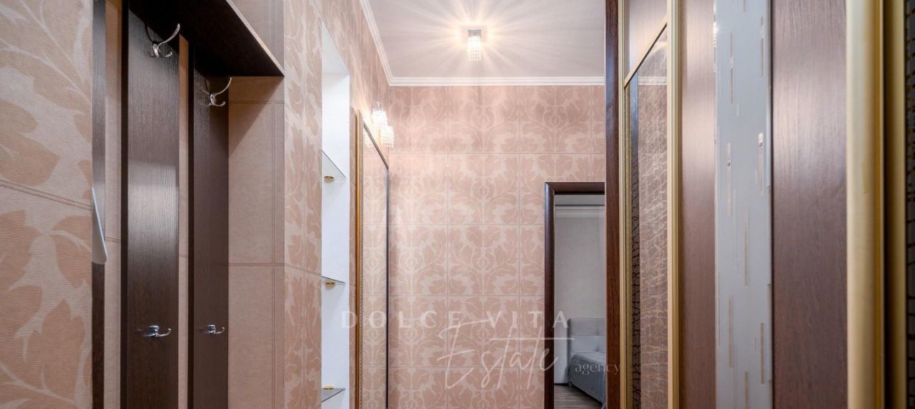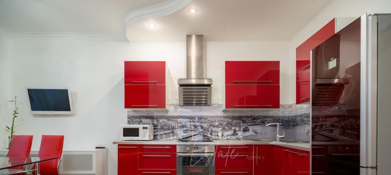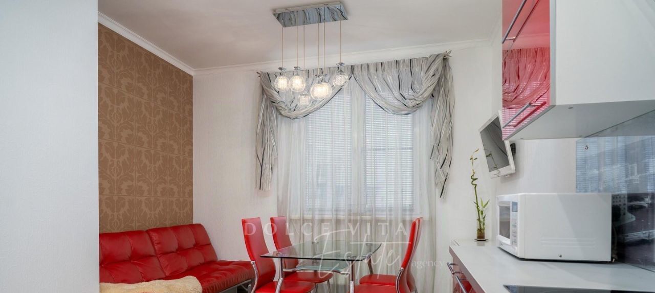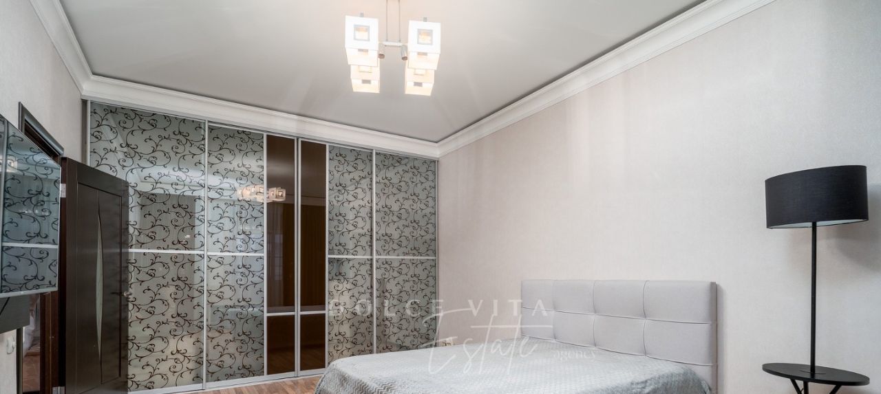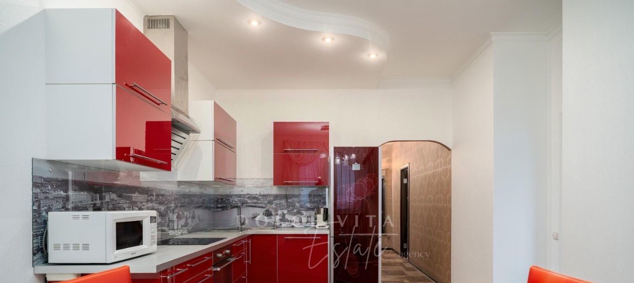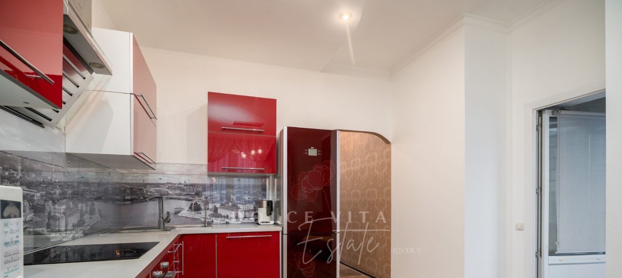В квартире выполнен дизайнерский ремонт, с использованием высококачественных отделочных материалов. Есть все необходимое для комфортного проживания, встроенная кухня с бытовой техникой.