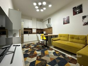 В новом жилом комплексе Солнечный город сдается уютная однокомнатная квартира с очень удачной планировкой. Общая площадь квартиры 34,5 кв. м, в том числе кухня-гостиная 17 кв. м, комната 12 кв. м. Из кухни-гостиной есть выход на большую лоджию. Квартира полностью меблирована, есть все необходимое для проживания. Просторная кухня-гостиная оснащена встроенной кухней, холодильником, варочной поверхностью, духовым шкафом, вытяжкой, есть диван, стол, стулья, телевизор. В комнате есть двухспальная кровать, комод, плательный шкаф, где можно удобно разместить ваши вещи. В ванной комнате оборудован теплый пол, установлена стиральная машина. Двор закрытый, с зонами отдыха и детскими площадками.