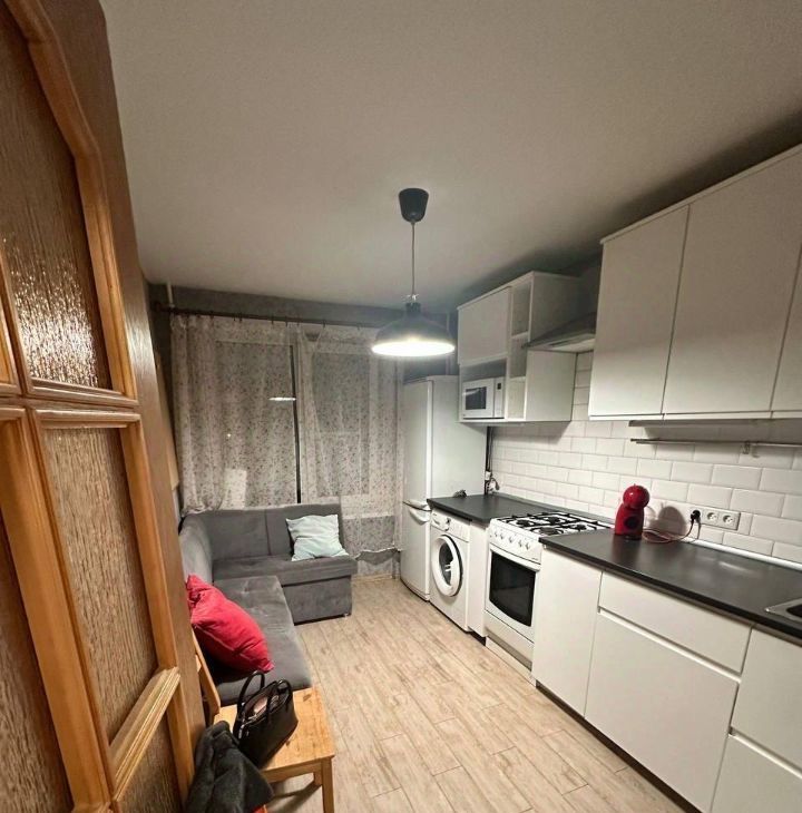 Сдается уютная квартира на длительный срок. В квартире выполнен свежий евро ремонт. Просторная кухня оборудована необходимой техникой: холодильник, плита, микроволновая печь и стиральная машина, кофе машина, бойлер для воды. В комнате установлен удобный диван и шкафы для хранения вещей. Ванная комната совмещенная, оформлена плиткой.
