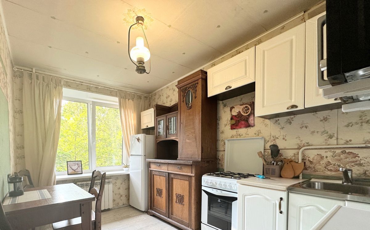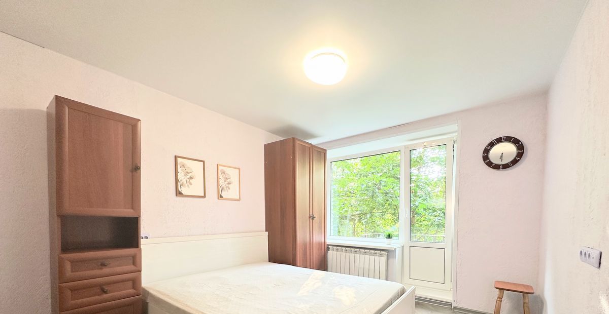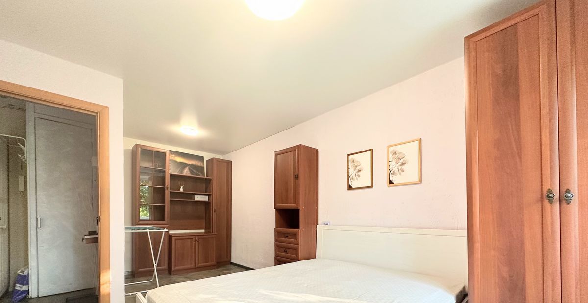 Квартира с ремонтом. В комнате и на кухне есть вся необходимая мебель для комфортного проживания. Совмещенный санузел оборудован ванной, где можно расслабиться после рабочего дня. На кухне площадью 9 кв. м установлены холодильник и стиральная машина. Окна выходят во двор, поэтому в квартире тихо и спокойно.