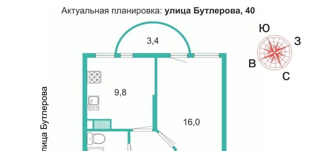 1-к кв. Санкт-Петербург ул. Бутлерова, 40 (35.5 м²)