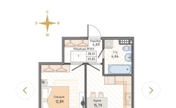 1-комнатная квартира: Санкт-Петербург, Коломяжский проспект, 13к3 (39 м²)