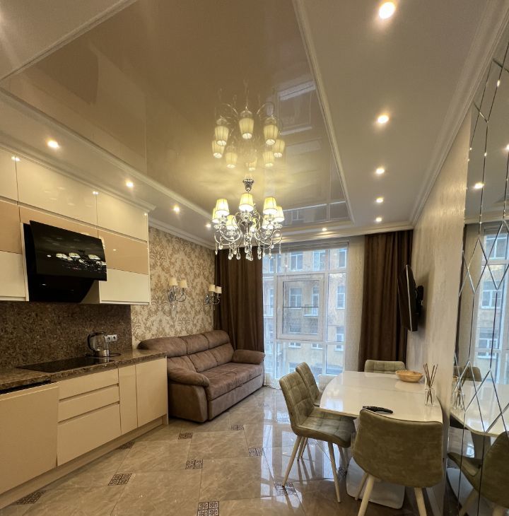 Сдается на длительный срок квартира в самом сердце Петербурга, Чапаева 18. Кухня-гостиная 20 метров и спальня - 25 метров с гардеробной и рабочим местом.