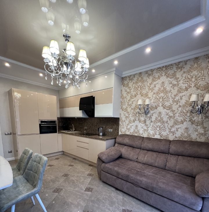 Встроенная кухня оснащена всей необходимой бытовой техникой - посудомоечная машина, индукционная варочная панель, вытяжка, духовка с функцией СВЧ, холодильник. Пол на кухне и в прихожей - плитка с подогревом, пол в спальне - паркетная доска. Санузел с душевой кабиной. Есть еще хозпомещение (постирочная) со стиральной и сушильной машиной. Квартира теплая, уютная. Желательно для одного человека или пары. Возможно с маленькой собакой. Без комиссии! Только оплата ежемесячно и залог.