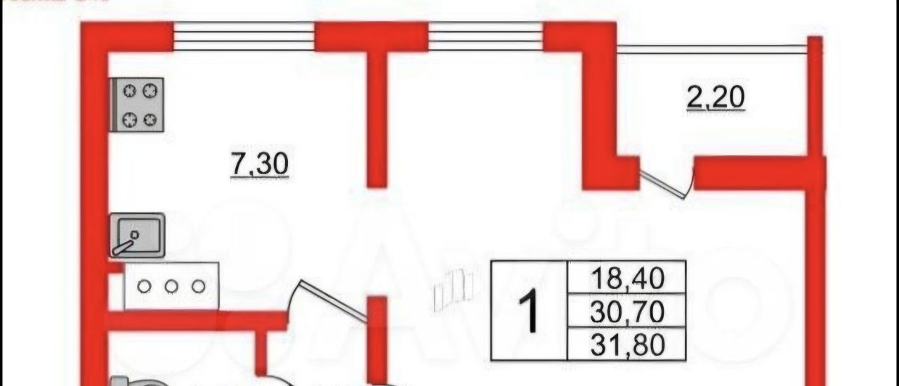 Студия Санкт-Петербург пос. Парголово, ул. Архитектора Белова, 6к1 (28.2 м²)