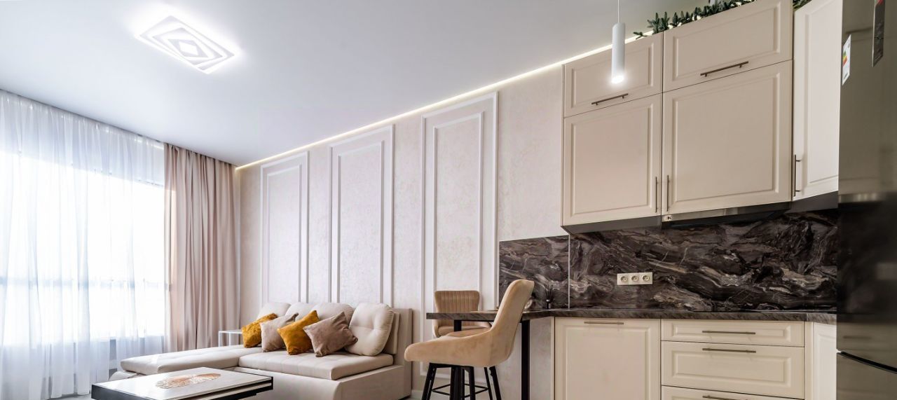 В квартире сделан ремонт в спокойных тонах, с использованием качественных материалов.