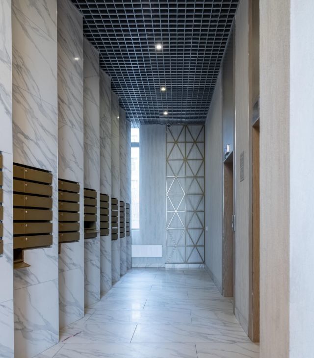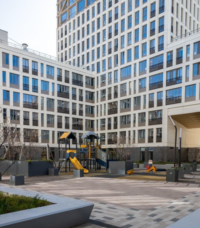 В доме — мусорные контейнеры, подземная и гостевая парковка, консьерж и круглосуточная охрана.