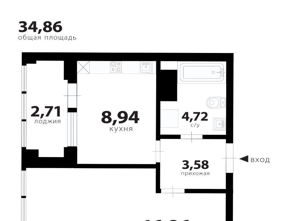 1-к кв. Санкт-Петербург ул. Челюскина, 6 (34.2 м²)