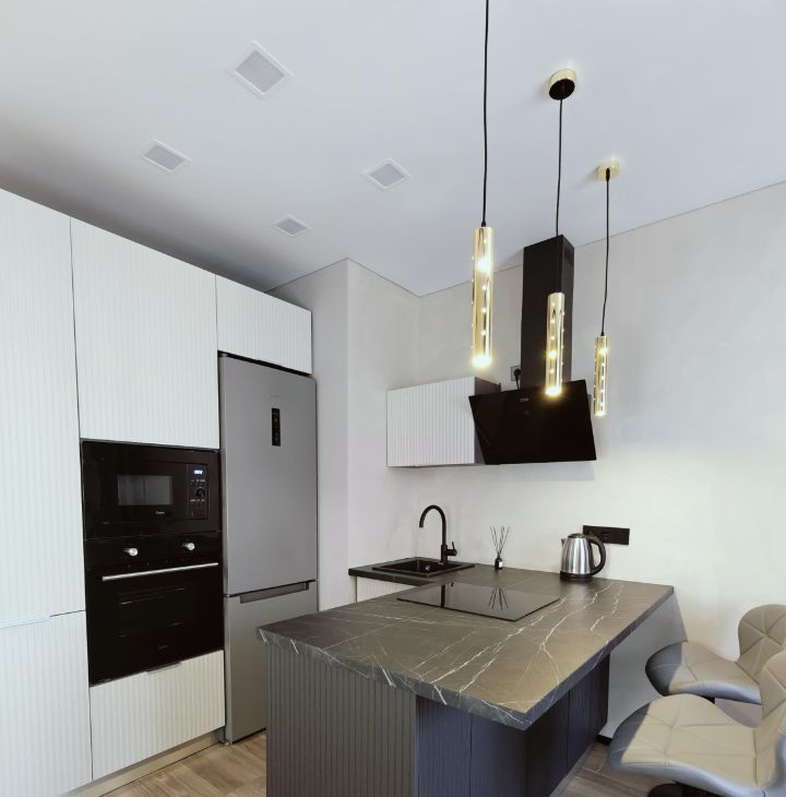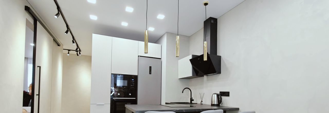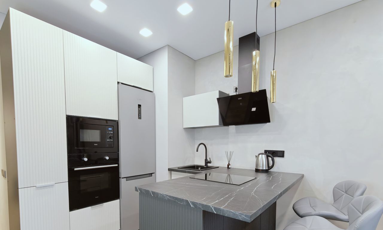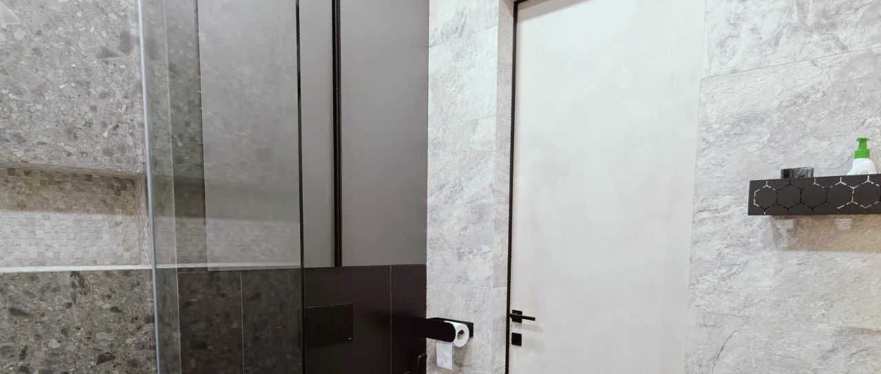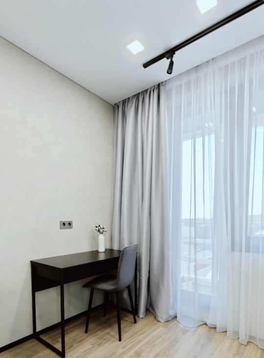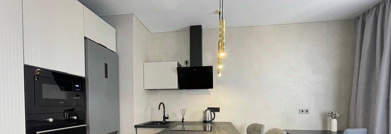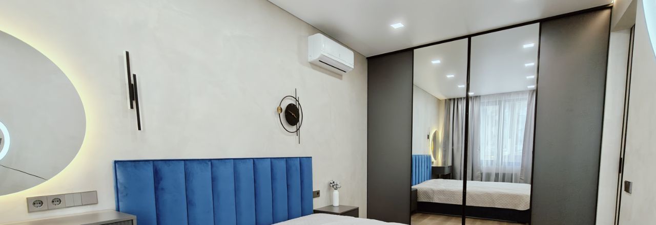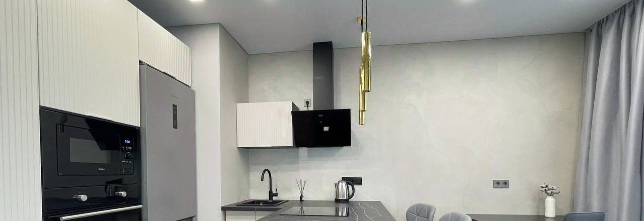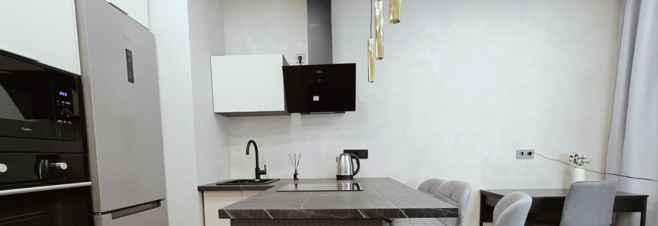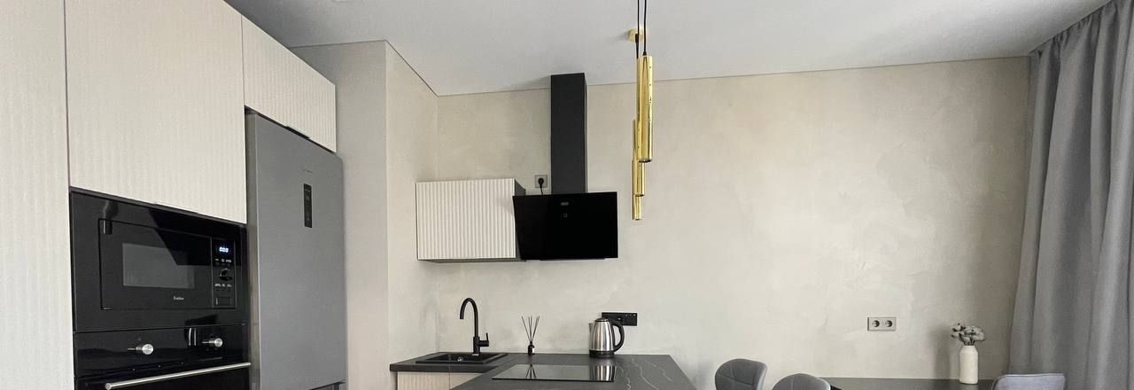 В квартире сделан дизайнерский ремонт, который подчёркивает её стиль и уют. Просторная кухня площадью 15 кв. м оборудована всей необходимой мебелью и современной техникой: холодильником, посудомоечной машиной и кондиционером. В комнате также имеется мебель, создающая комфортное пространство для отдыха и работы. В ванной комнате установлена душевая кабина, что добавляет удобства в повседневной жизни.