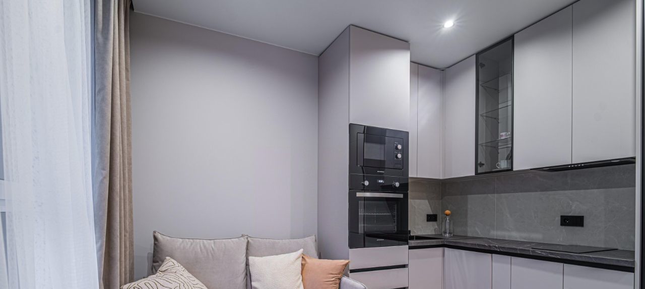 • Оборудована новейшей техникой: стиральная машина, посудомоечная машина, встроенный холодильник, духовой шкаф, микроволновая печь, телевизор — вся техника остается в квартире и входит в стоимость
