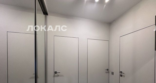 Прихожая также оборудована встроенным гардеробным шкафом с зеркальными фасадами.