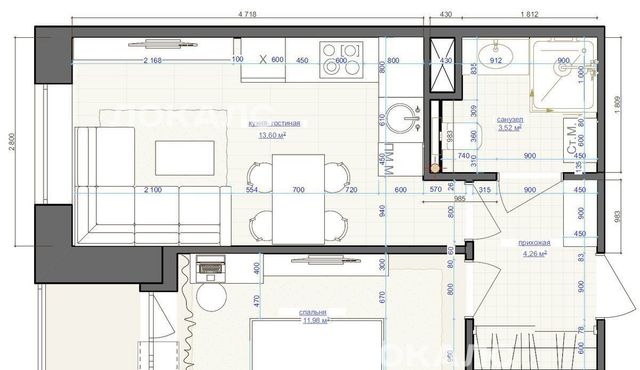 Новая квартира с современным свежим ремонтом (никто не жил) с хорошей планировкой: кухня-гостиная с диваном, обеспечивающим дополнительное спальное место и уютной спальней со встроенной гардеробной.