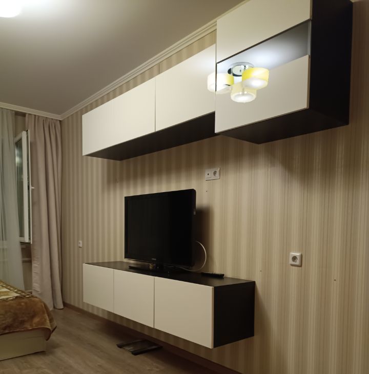 В квартире выполнен качественный евроремонт. В комнате и на кухне есть вся необходимая мебель. Вся техника новая, т.к. приобреталась для себя — двухкамерный холодильник INDESID, посудомоечная машина HANSA, варочная панель BOSCH, вытежка TEKA, телевизор SAMSUNG и стиральная машина HAIER на 6 кг с функцией пара, микроволновка SAMSUNG, мультиварка PANASONIC, вертикальный пылесос DEERMA, утюг TEFAL, вся необходимая посуда, включая кастрюли и сковородки и даже специи, крупы и чай/кофе, постельное белье и полотенца, что сделает проживание комфортным и удобным в день заезда. Высота потолков 2.6 метра создает ощущение простора, а окна выходят во двор, поэтому в квартире тихо и уютно. Ванная комната оборудована ванной, раковиной с удобной системой хранения, зеркалом с красивой подсветкой и вместительным шкафом для хранения полотенец и чистящих средств.
