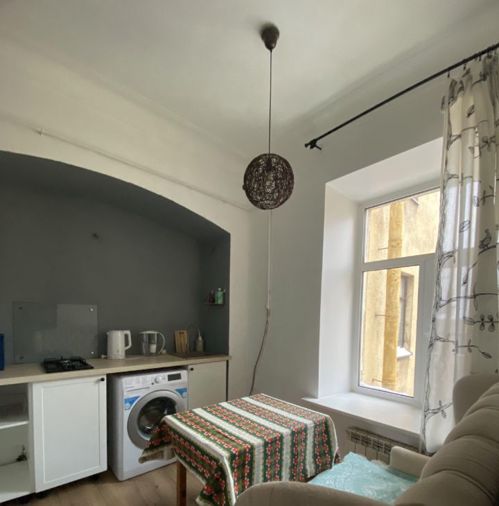 В историческом центре Санкт-Петербурга рядом с Мариинским театром и Консерваторией, на улице Декабристов 13 ,сдается однокомнатная квартира в стиле лофт. Общая площадь квартиры — 31 кв. м,расположена на 4 этаже 7-этажного кирпичного дома, построенного в 1833 году. Высокие потолки (2.97 метра) создают ощущение простора.Кухня оборудована необходимой мебелью и техникой. Ванная комната с окном,совмещенная.Спальное место приобретается под арендатора под определенную сумму.Окна выходят во двор, поэтому в квартире всегда тихо и спокойно.