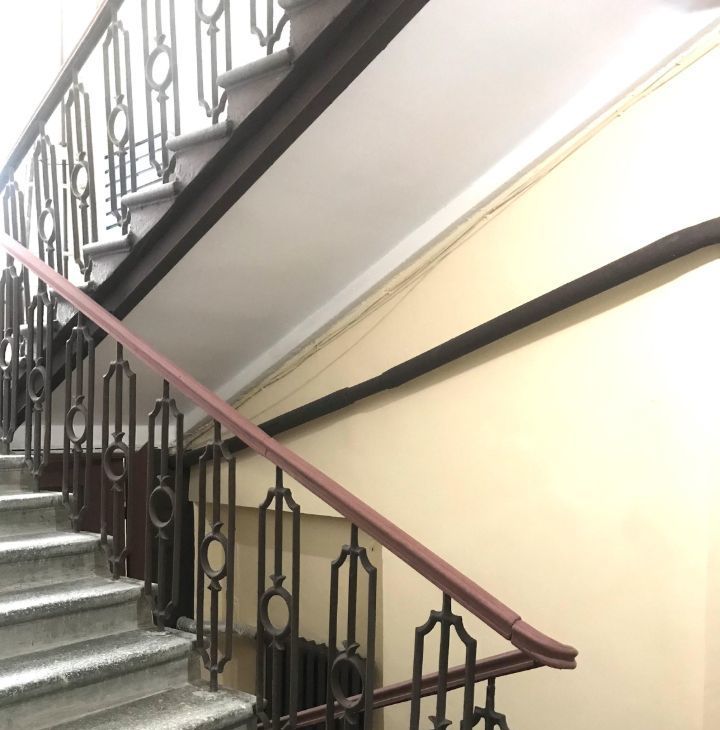 Квартира очень тёплая и светлая. 3 огромных окна дома сталинской постройки выходят на 2 стороны, на юг и запад во двор и на благоустроенный цветущий летом сквер Мариуса Петипа. Высокий бельэтаж. Вход в парадную из тихого зелёного двора.