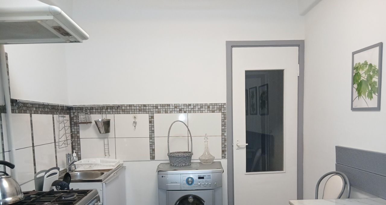 в отличном состоянии, с мебелью и всем необходимым для проживания: пылесос, посуда, газовая плита, стиральная машина, холодильник, утюг, гладильная доска.