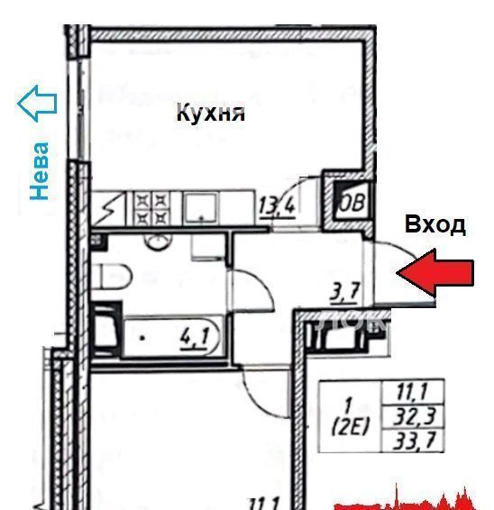 1-к кв. Санкт-Петербург ул. Дыбенко, 3 (33.7 м²)