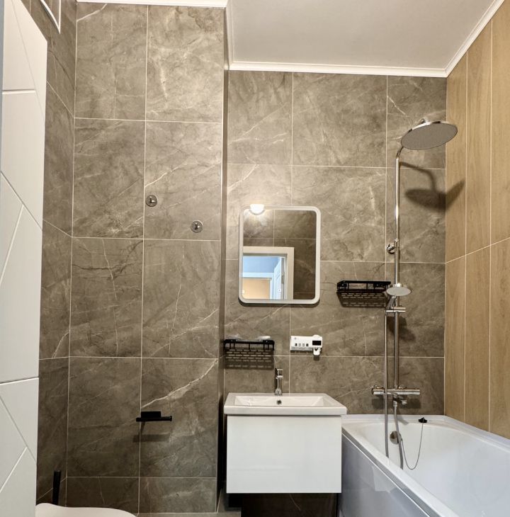В квартире качественный новый ремонт, есть вся необходимая мебель и бытовая техника.