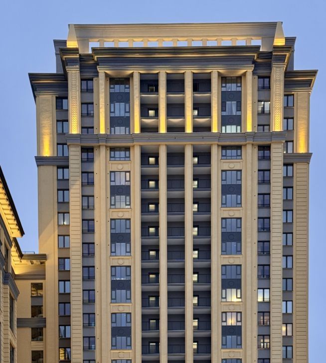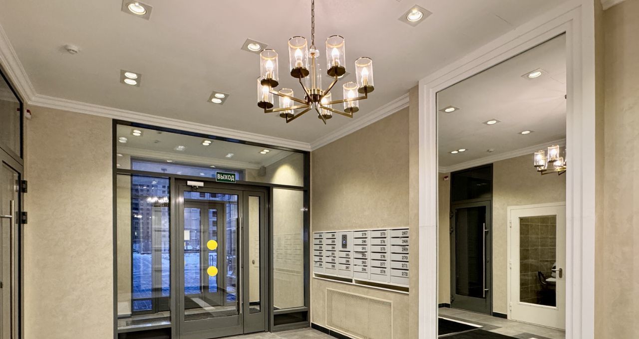 Нарядный холл, быстрые лифты, несколько квартир на этаже, лифт опускается на уровень подземного паркинга, где можно снять в аренду машиноместо.