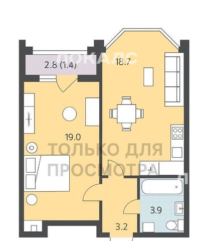 1-к кв. Санкт-Петербург ул. Дыбенко, 3 (46.2 м²)