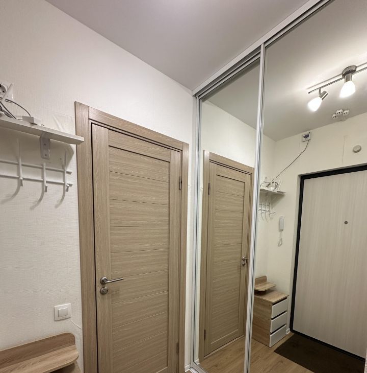 Прихожая: шкаф -купе, небольшой комод, настенная вешалка