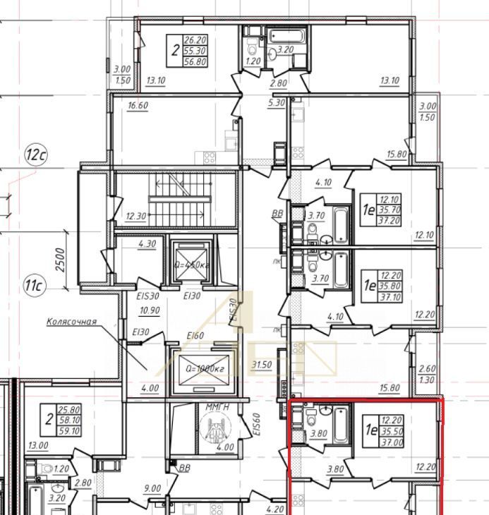 Общая площадь — 37 м².