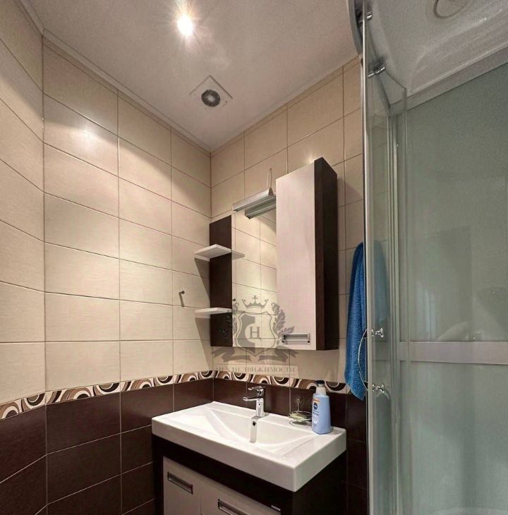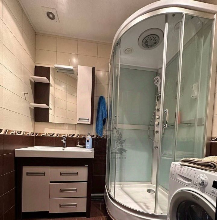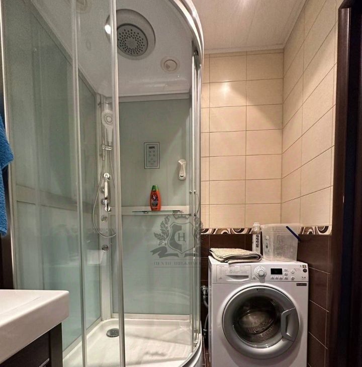 • В ванной — душевая кабина и стиральная машина