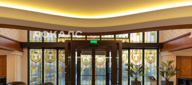 - Элегантный вход с колоннами, мрамором и витражами