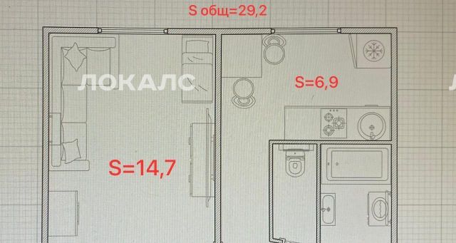 1-к кв. Санкт-Петербург ул. Евдокима Огнева, 4К1 (29.2 м²)