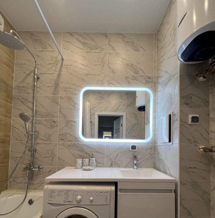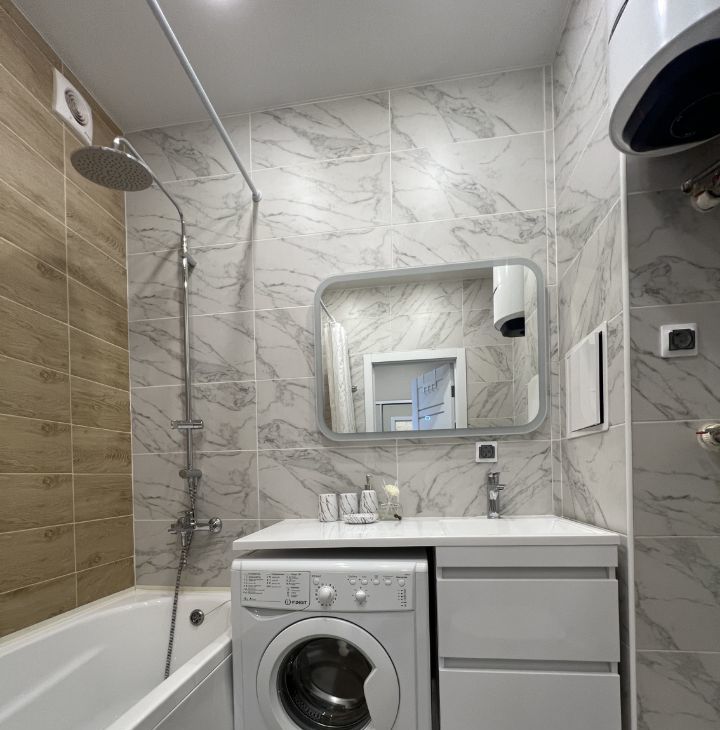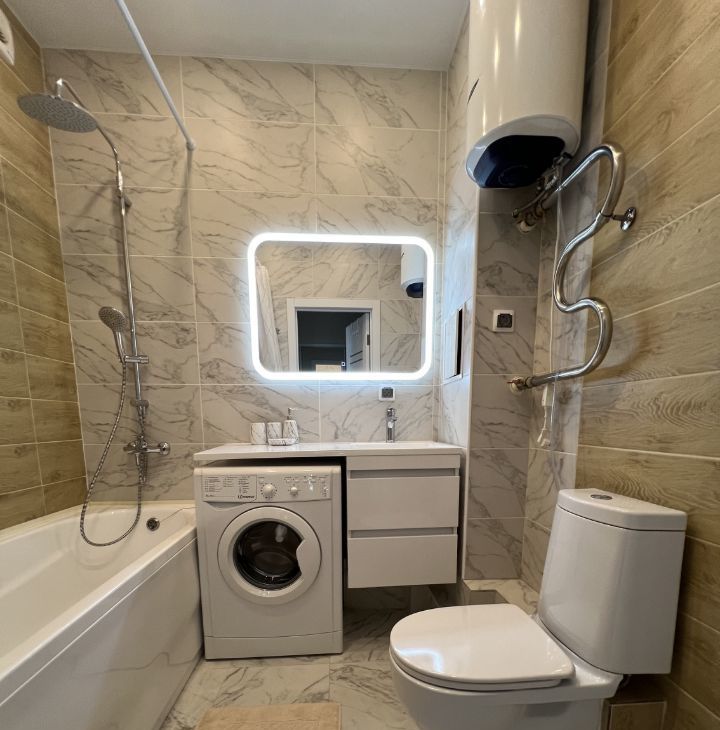 - совмещенный санузел с ванной, стиральной машиной и водонагревателем