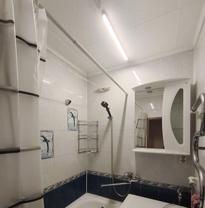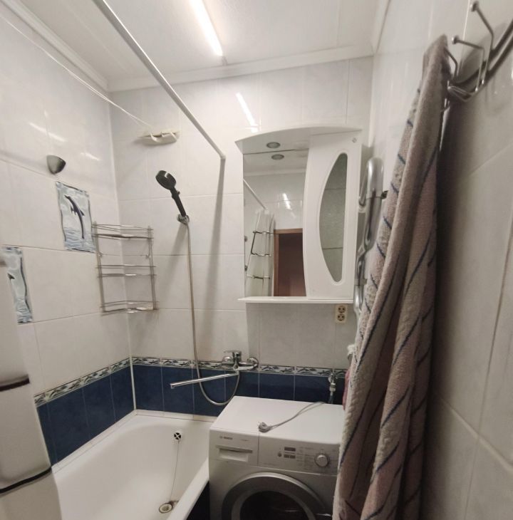 Квартира в хорошем состоянии с косметическим ремонтом. В комнате и на кухне есть вся необходимая мебель. Кухня оборудована современным холодильником, а в ванной комнате установлена стиральная машина. Окна выходят во двор, что обеспечивает тишину и спокойствие.