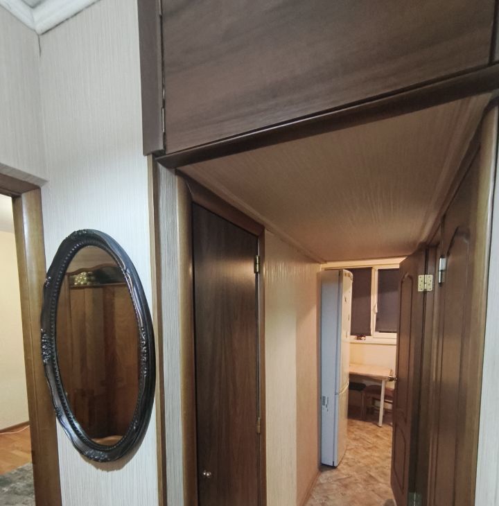 Сдается на длительный срок э уютная однокомнатная квартира общей площадью 32 кв. м на 3 этаже 9-этажного панельного дома. Жилая площадь составляет 18 кв. м, а кухня — 6.3 кв. м. Высота потолков — 2.55 метра. До ближайшего метро можно добраться на автомобиле всего за 8 минут.