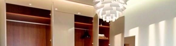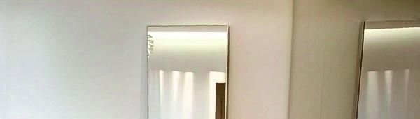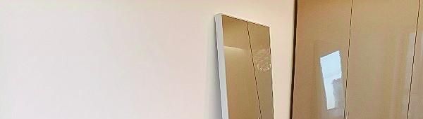 В комнате встроенный шкаф во всю стену, комод, зеркало в пол,