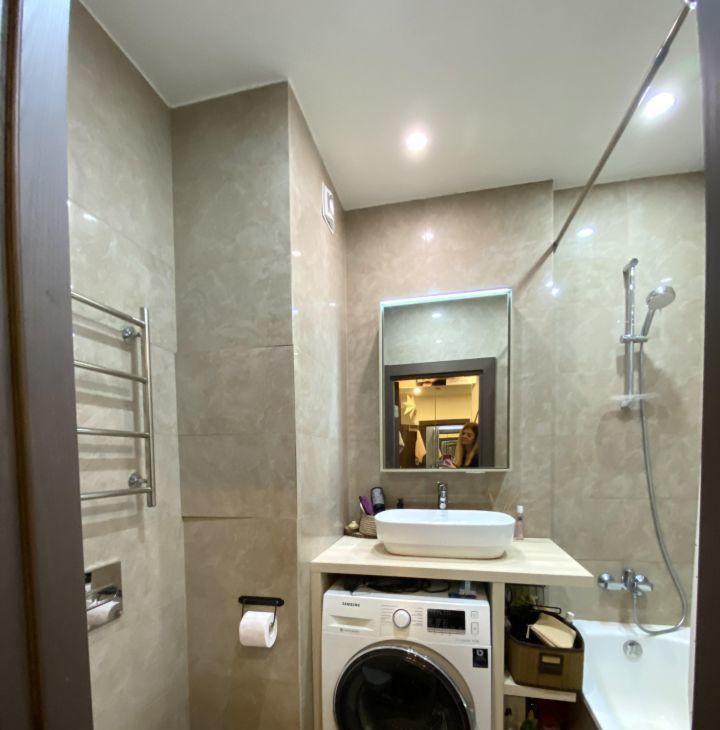 В квартире сделан качественный евроремонт. Удобная планировка с жилой площадью 16 кв. м и просторной кухней 12 кв. м. Кухня оснащена всей необходимой мебелью и техникой, включая холодильник и посудомоечную машину. В комнате также имеется мебель для комфортного проживания. Совмещенный санузел оборудован ванной и стиральной машиной, поэтому можно сразу заехать и начать жить.