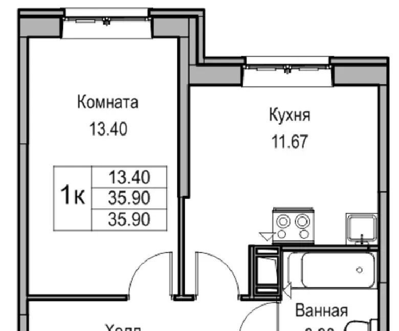 1-к кв. Санкт-Петербург ул. Ивинская, 19к1 (35.9 м²)
