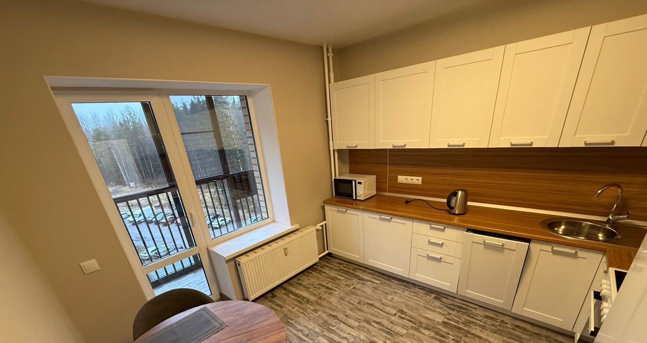 -Кухня с выходом на балкон застекленный, есть подсветка. Вид из окон квартиры на природу. Отдохнуть от суеты в тишине , выпить чашечку кофе утром, насладится видом из окна , помечтать о главном для вас .