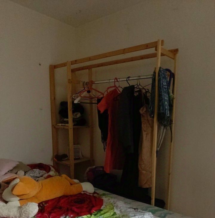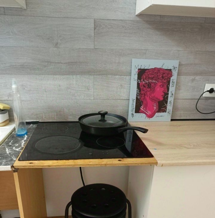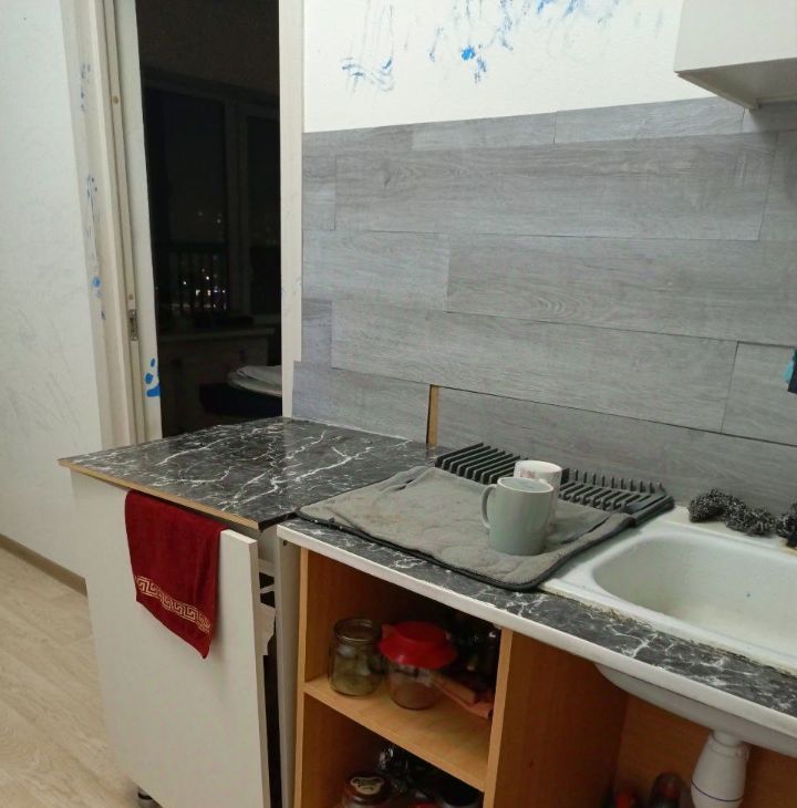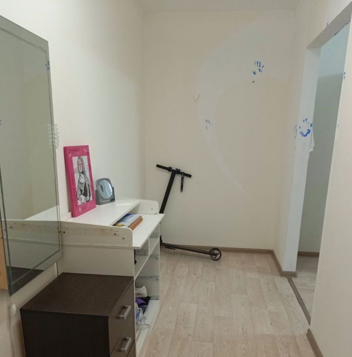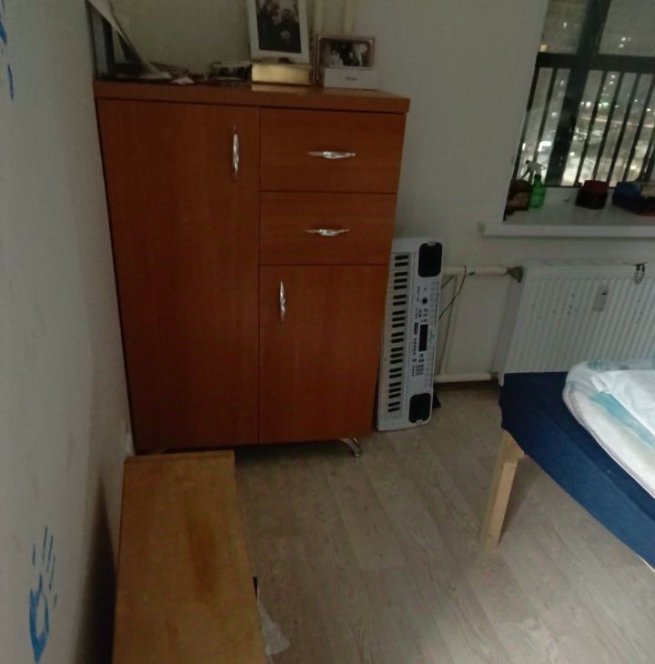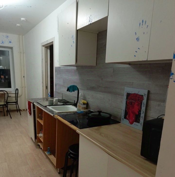 В комнате установлены шкафы и кровать, а также имеется выход на застеклённую лоджию. Кухня оборудована необходимой техникой, включая холодильник и плиту. Ванная комната совмещена, оснащена стиральной машиной.