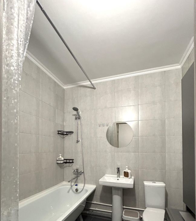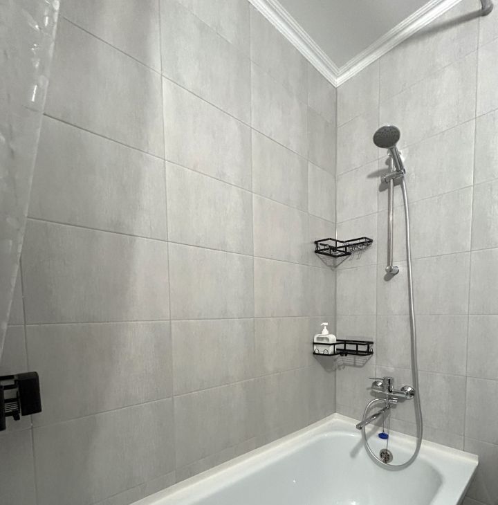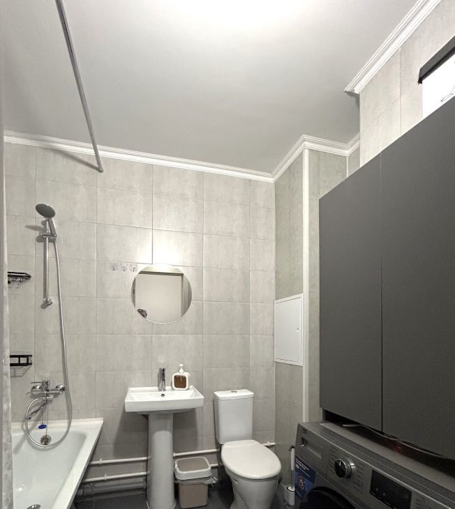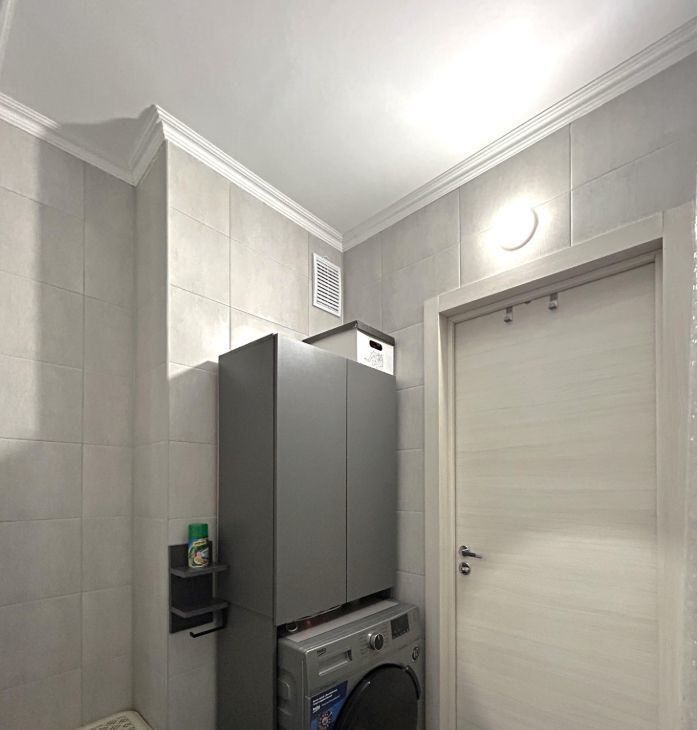 - С/У: совмещенный в кафеле с ванной. В с/у установлена стиральная машина. Есть шкаф для хранения.