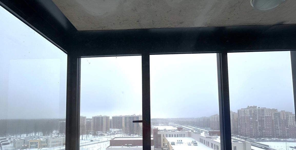 Сдается квартира - студия в новом ЖК Юнтолово. Дом расположен в глубине двора, окна квартиры выходят во двор.