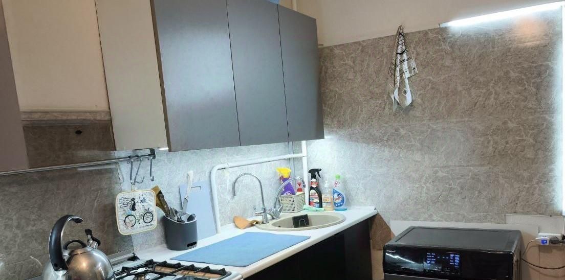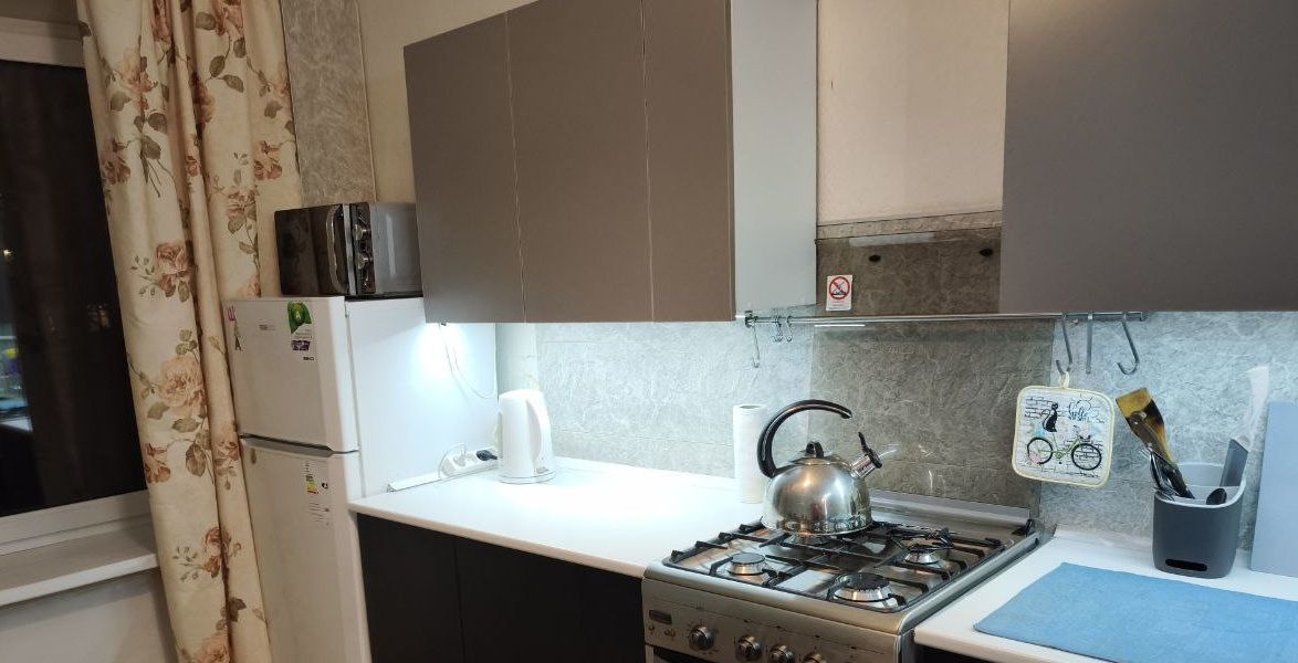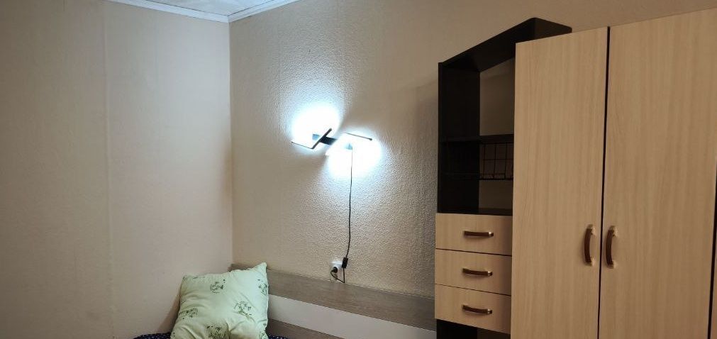 В квартире чисто и функционально, после предыдущих жильцов проведена уборка, готова к заселению. В комнате: двуспальная кровать, диван-книжка, стол, шкафы для хранения. Кухня: недавно обновлённый гарнитур, новая газовая плита, холодильник, микроволновка, стол и стулья, новая стиральная машина. Балкон. Санузел совмещённый. Окна во двор.