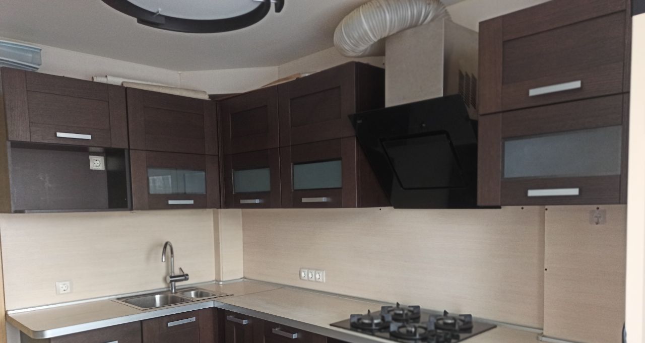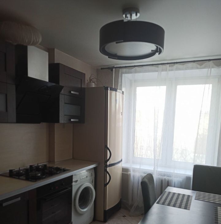на кухне вся необходимая бытовая техника - варочная поверхность, духовой шкаф, посудомоечная машина, холодильник, стиральная машина, вытяжка.
