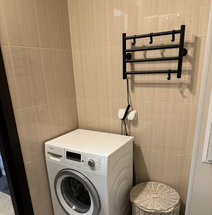 Стиральная машина находится в ванной