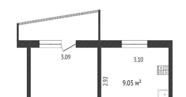 - Однокомнатная квартира общей площадью 35.4 кв.м